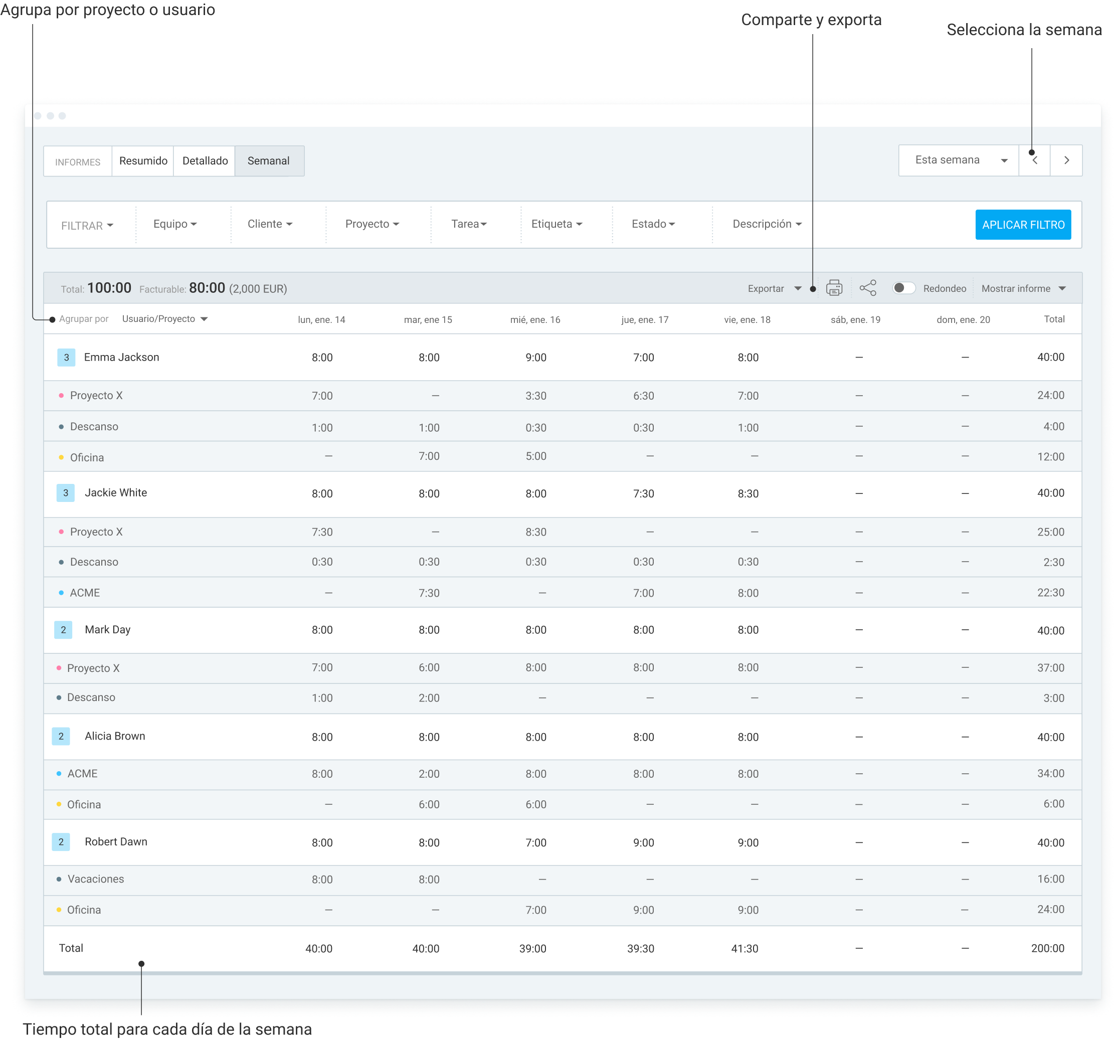 Si te preguntas por qué, la respuesta es simple: obtener el informe que necesitas (recopilar y presentar la información de cada miembro del equipo y de los proyectos) te llevará mucho tiempo.
