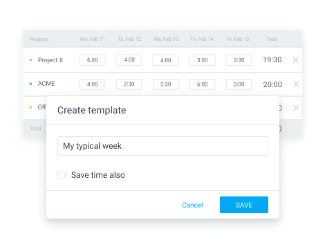Quickly populate timesheet with your most common activities.