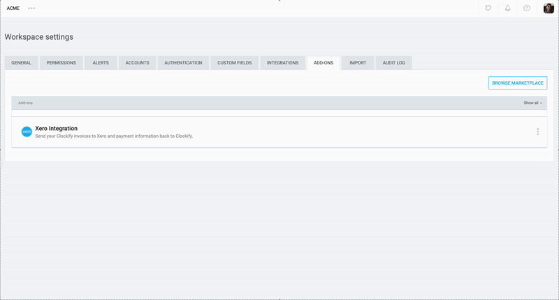 After you’ve installed the add-on, proceed with connecting the two applications (Xero and Clockify).