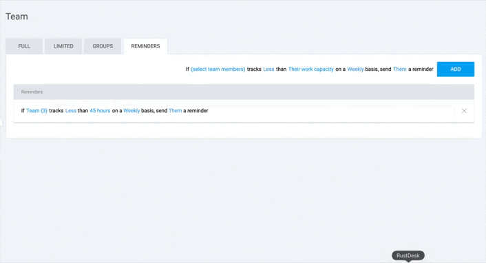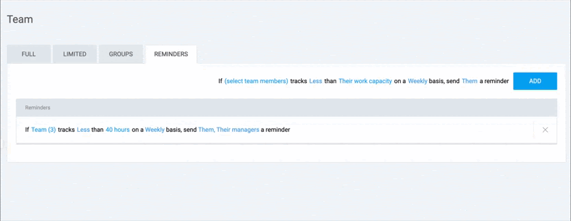 - Erinnerungen dienen dazu, Teammitglieder zu informieren, wenn sie ihre Soll-Stunden noch nicht erreicht oder wenn sie zu viel Zeit erfasst haben.