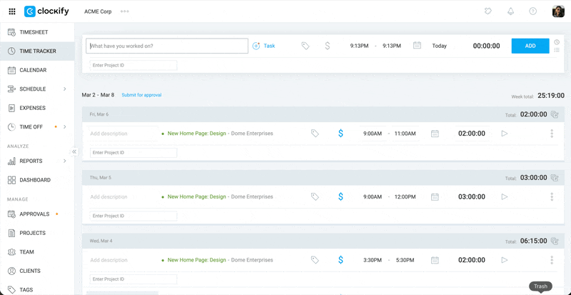 Finalmente, tu pantalla en Clockify debería verse algo como esto:
