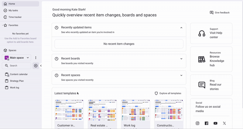 Trabaja con los miembros del equipo en espacios de trabajo y espacios compartidos. Puedes invitar miembros a tableros específicos y compartir elementos con ellos.