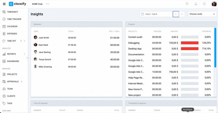 | Financial | Displays total tracked time, including Amount, Cost, and Profit | Pro plan & above |