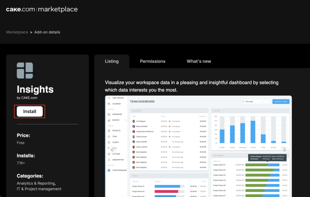 To start using the dashboard, you must first install the add-on from the Marketplace.