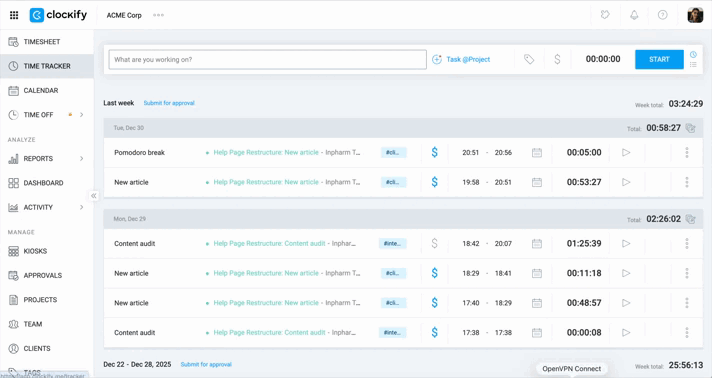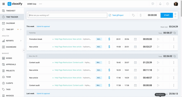 - Open the Clockify app