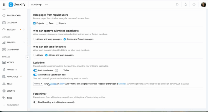 L’automatisation de la date de verrouillage vous évite d’avoir à mettre à jour les paramètres manuellement chaque semaine ou chaque mois.