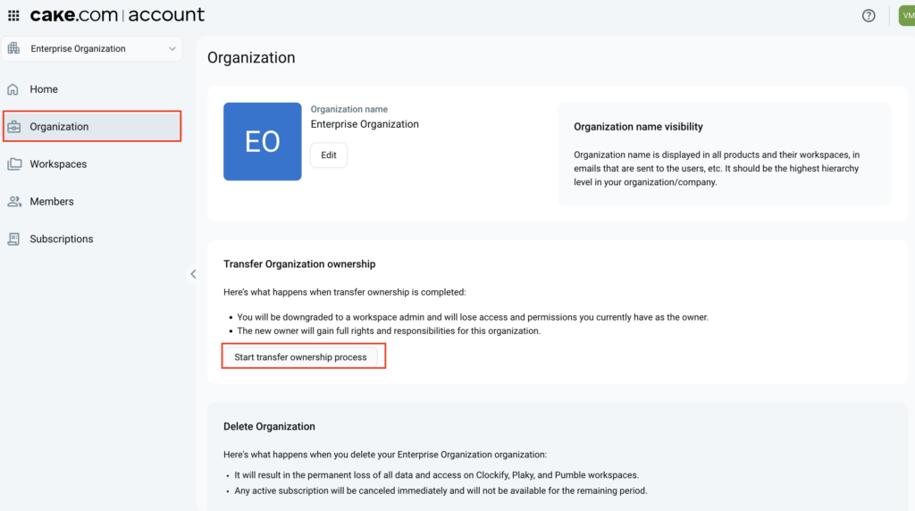 Alternatively, you can change the ownership directly via the Organization page. To do so: