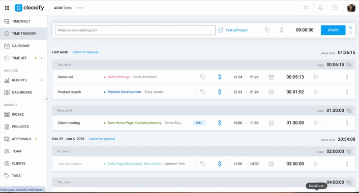 Rejecting a time entry is a necessary part of the workflow when an entry does not meet your workspace’s tracking requirements.
