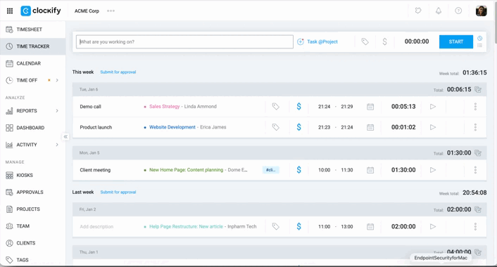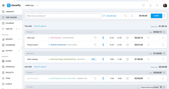 - Follow the prompts to log in to the Clockify dashboard