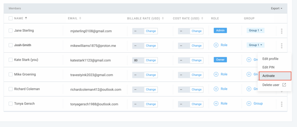 You can reactivate a user to restore their access to a workspace. Reactivating a user allows them to log in, track their time, and see their dashboard again. All their past data is automatically restored into the current reports.