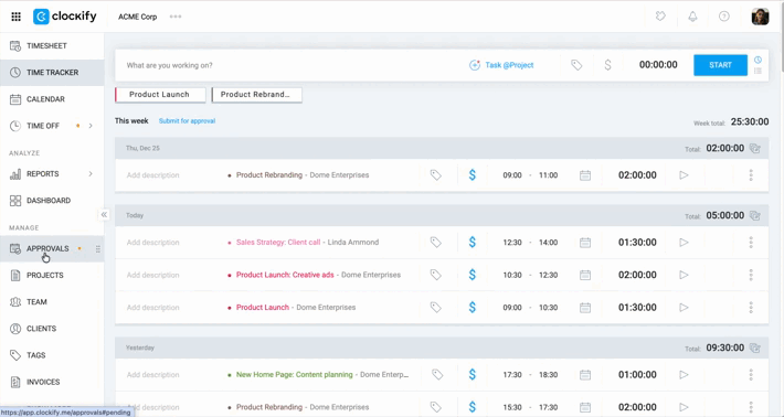 - Billable: Hours marked with the $ icon, intended for client invoicing
