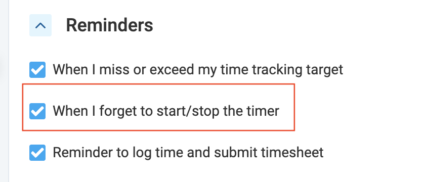 Reminders to start your timer won’t be sent if you’re on time off or you’ve entered a time entry manually.
