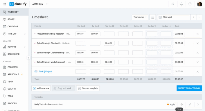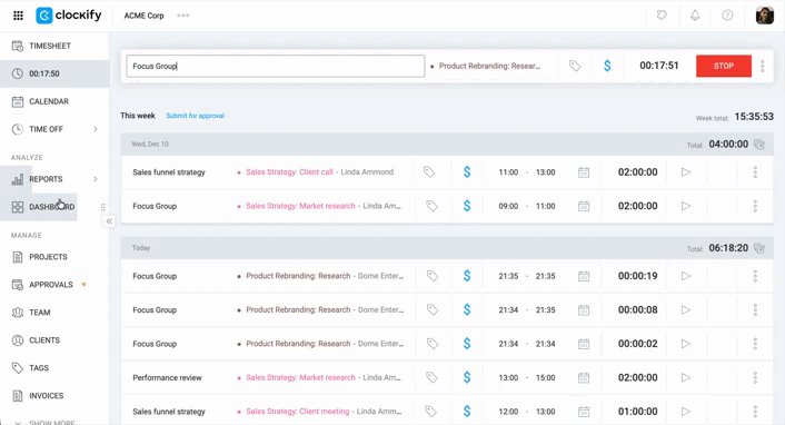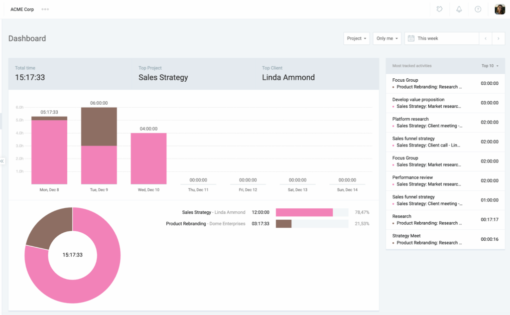 - Uma análise detalhada do tempo da equipe por projeto ou faturamento.