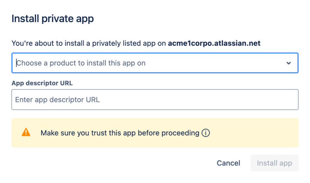 • Em URL do descritor do aplicativo, insira o URL do seu plugin Clockify e clique em Instalar aplicativo.
