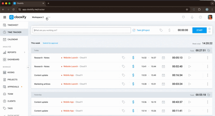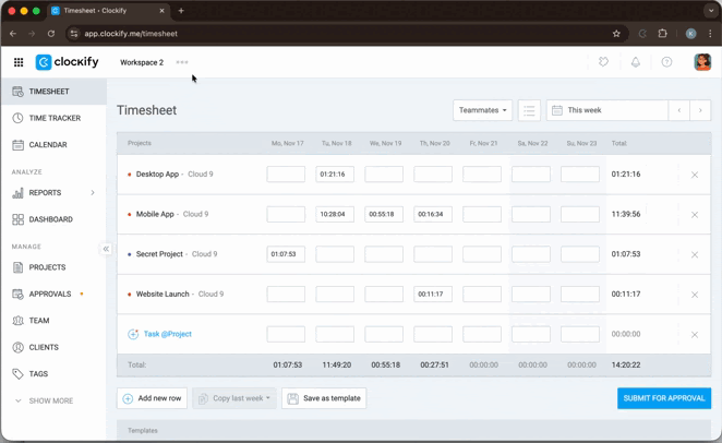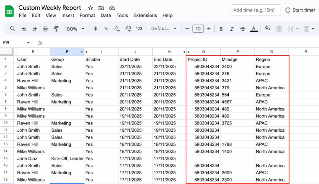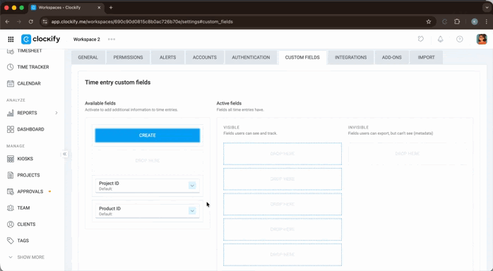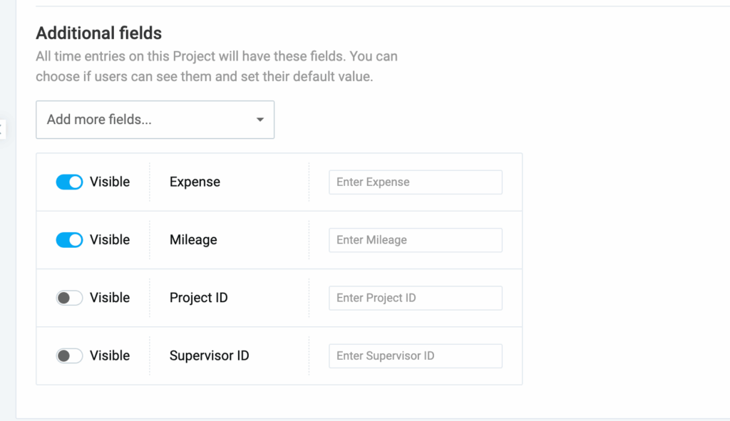 Active visible fields will appear in the Timesheet and Time Tracker for everyone in the workspace.