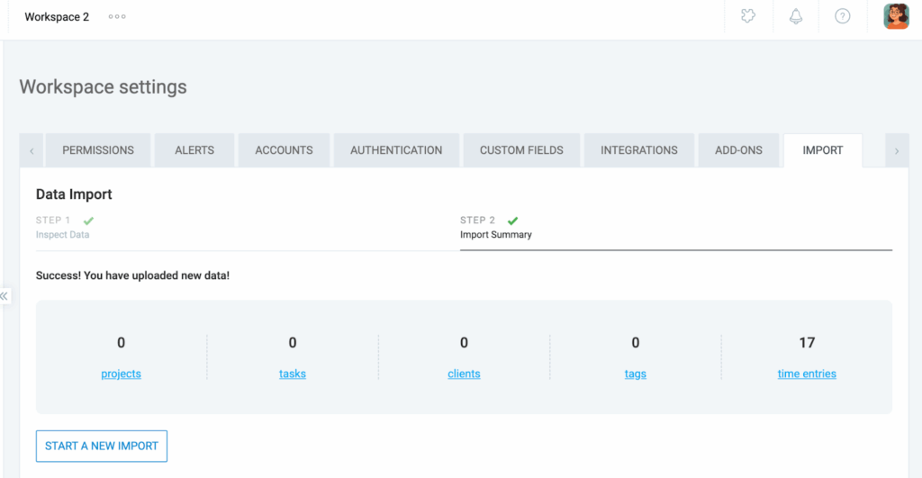 Custom field data can be imported using a CSV file that contains time entries. Ensure the column headers are in English and the time duration format matches your workspace settings.