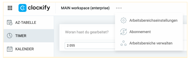 Wähle die Option “Arbeitsbereich verwalten” aus deinem Clockify aus.